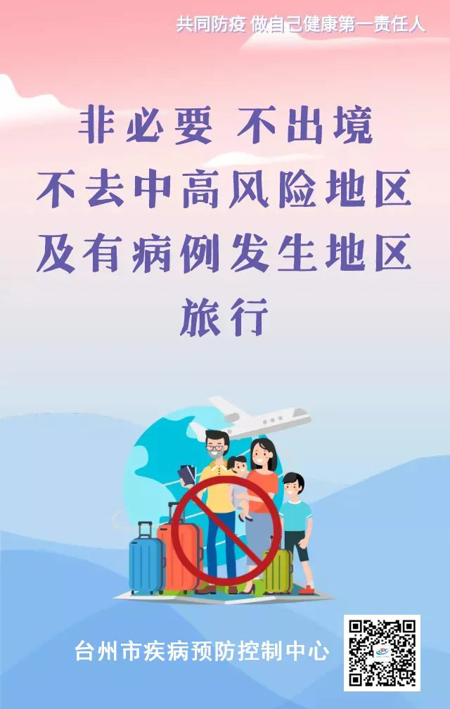 1、请市民朋友密切关注中高风险地区信息动态,合理安排假期行程,非必要不出境、不出省,不前往中高风险区所在设区市(直辖市为所在区),不前往已有阳性病例报告的地区。